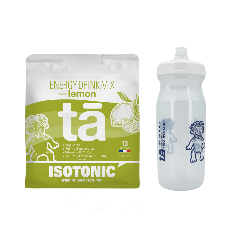 Maltodextrine, sucre pure de canne, poudre d'eau de coco déshydratée titrée en potassium, acides aminés branchés (dont émulsifiant : lécithine de tournesol) : L-leucine, L-isoleucine, L-valine, sel, acidifiant : acide citrique, citrate de magnésium marin, arôme naturel de citron, poudre de jus d'acérola déshydraté titré en vitamine C, vitamine B12 (cyanocobalamine) et vitamine B6 (chlorhydrate de pyridoxine).