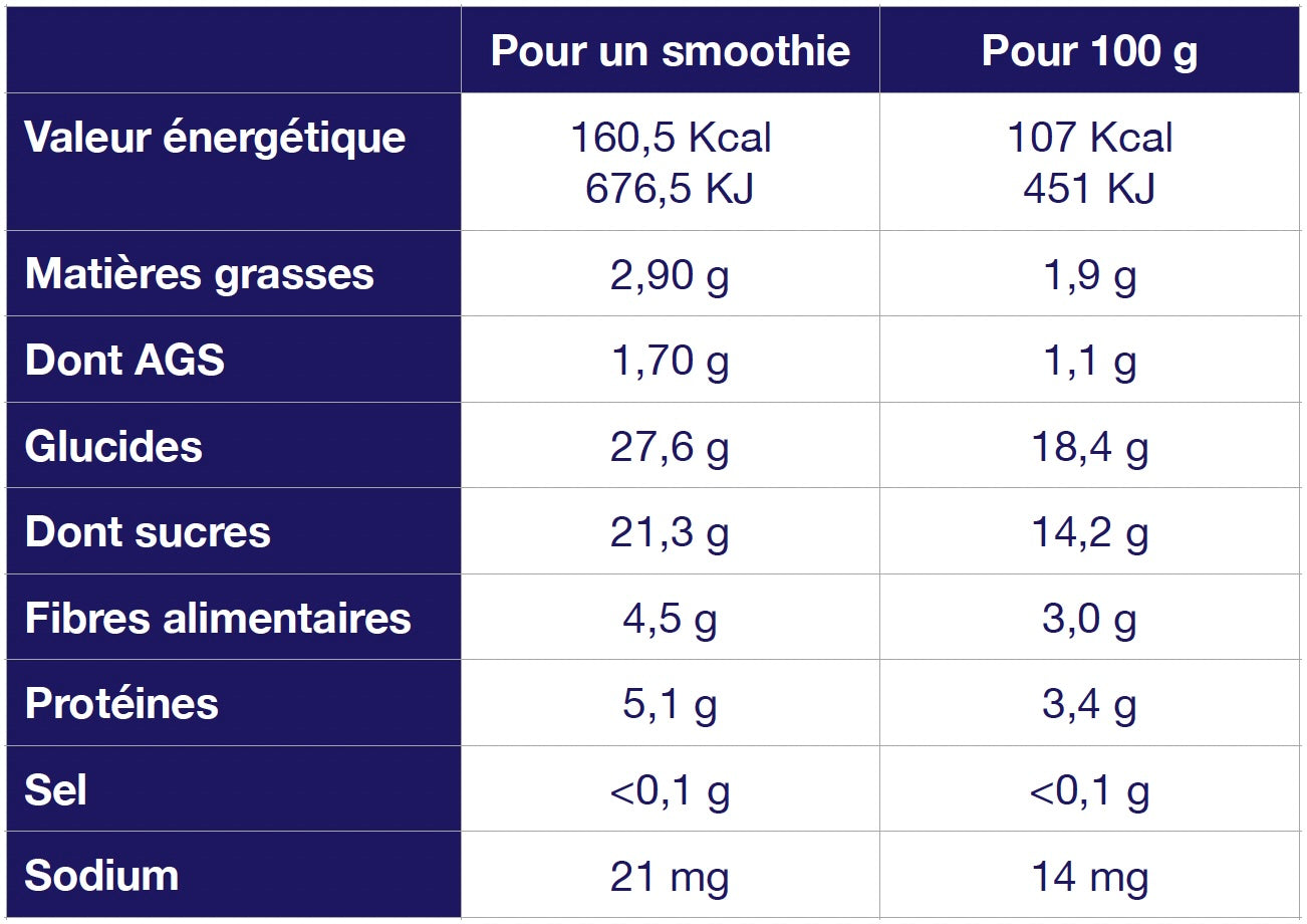 - 27,6 g de glucides / breakfast smoothie