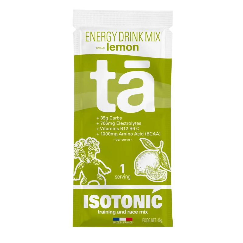 Maltodextrine, sucre pure de canne, poudre d'eau de coco déshydratée titrée en potassium, acides aminés branchés (dont émulsifiant : lécithine de tournesol) : L-leucine, L-isoleucine, L-valine, sel, acidifiant : acide citrique, citrate de magnésium marin, arôme naturel de citron, poudre de jus d'acérola déshydraté titré en vitamine C, vitamine B12 (cyanocobalamine) et vitamine B6 (chlorhydrate de pyridoxine).